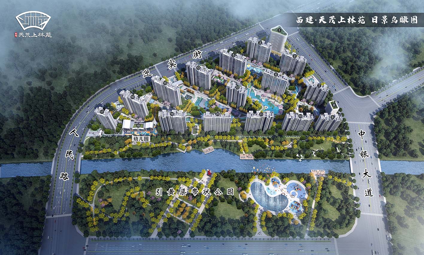 双盘聚势:围绕引黄公园,西建耕耘两子相环,天茂上林苑137亩,天茂紫宸145亩,苑有意来宸有声,双子相承助北城。